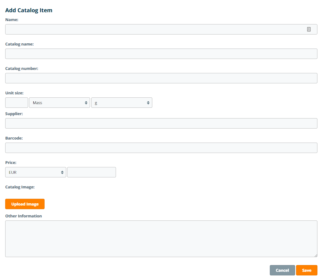 Users can enter the following information for the catalog item: