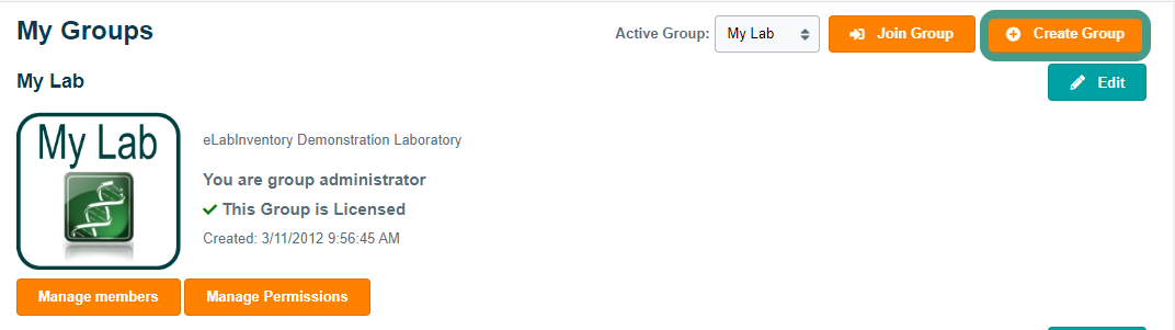 Click Save to confirm your group information. When creating a group, you can also modify and set Group Settings and Group Policies. If you create a second group, you can easily change the active group in My Groups. Note that the group must be licensed before you may invite additional lab members. Please contact us to upgrade your license. Note that if your organization has a Private Cloud or an On-Premises installation, the organization's key user may choose to disable the option for end-users to add or invite other users to a group.