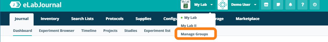 If your lab is new to any of our applications, your first step should be to set up a group where you can share data with other co-workers in your organization. Navigate to Manage Groups.