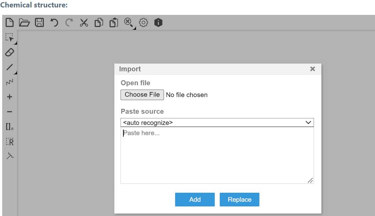 Adding structures to the chemical structure sample field