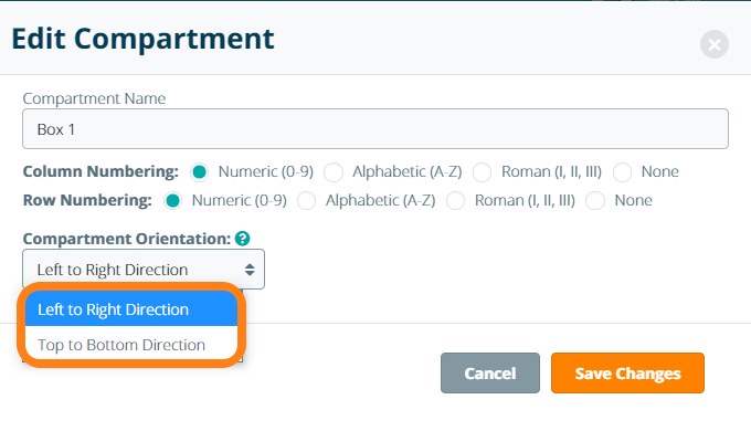 Change the Compartment Orientation field to the desired setting and click Save Changes.
