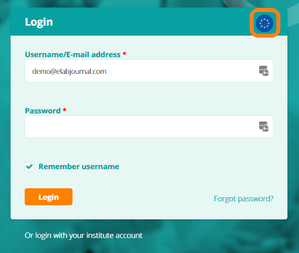 To comply with European (GDPR) and US privacy regulations, the eLabJournal Cloud is hosted on servers within either European or North America regions. Depending on your country of residence, you will automatically be transferred to the server available for the selected region based on your IP address. The server where you are directed is indicated by the flag icon in the login menu.