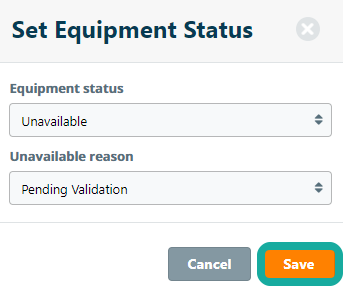 Here you can change the status and the new status. When setting a device to unavailable one of the following reasons can be selected: