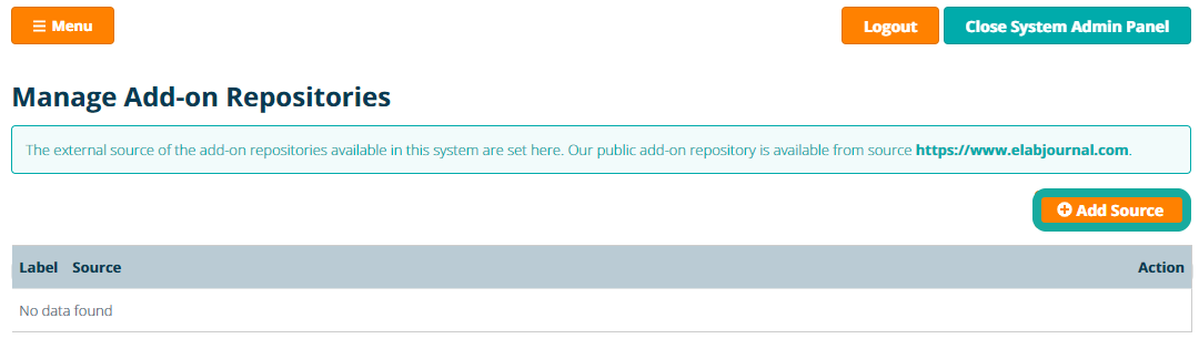 All public add-ons can be retrieved from the eLabJournal public repository which is available on https//www.elabjournal.com. For customers with a Private Cloud or On-Premises installation, the Public repository can be added as default setting in your system installation.