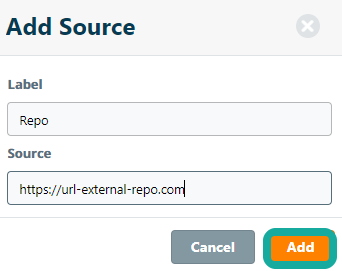 In the appeared window you can label your repository and add the URL of your system as a source. Click add to add the source to the system.