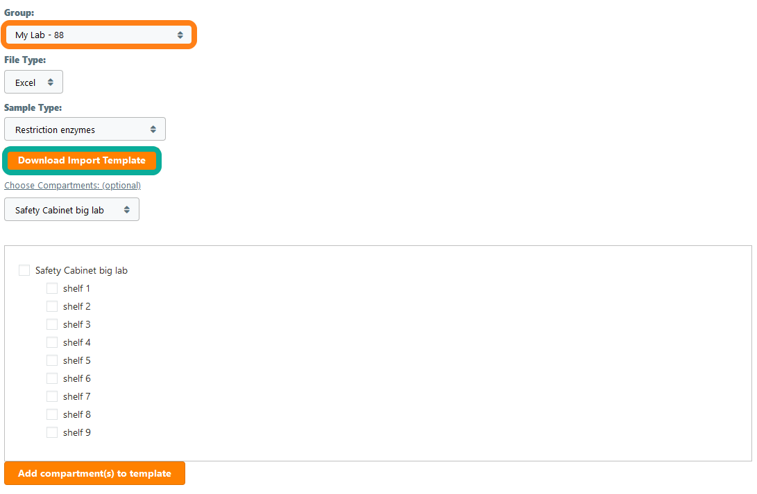 Select the group where the storage unit is created, select the storage unit and click Download Import Template