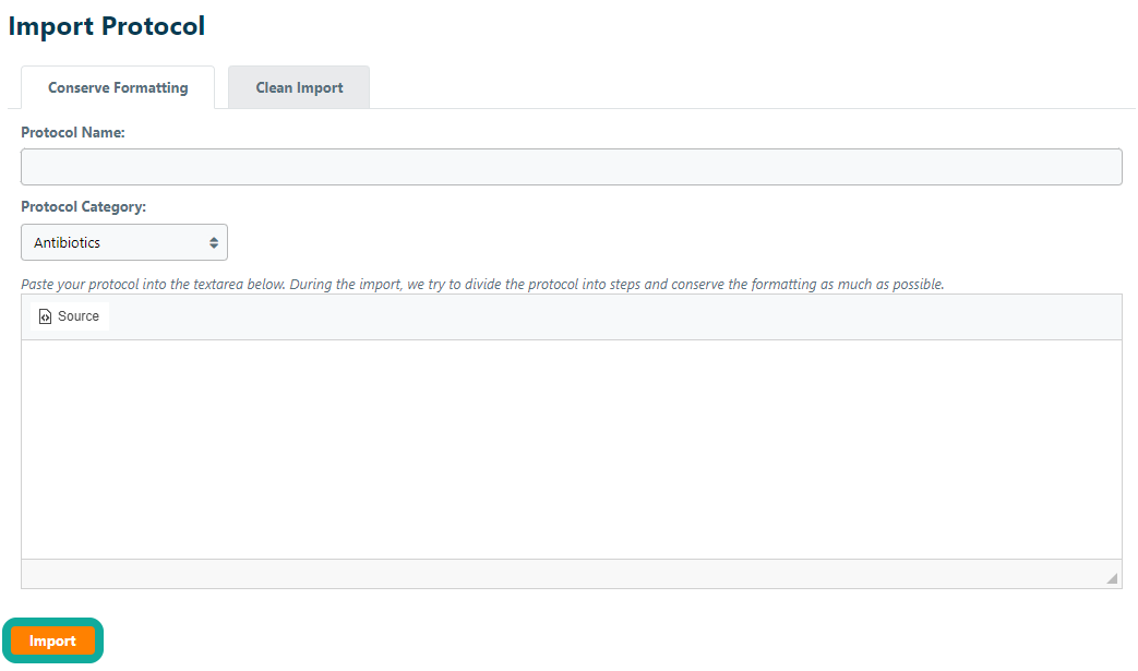 Note: depending on the formatting of the original SOP, the import feature may not produce the desired result when Conserve Formatting is selected. If this is the case, then eLabNext recommends using the Clean Import option and reformatting the text once the protocol has been imported.