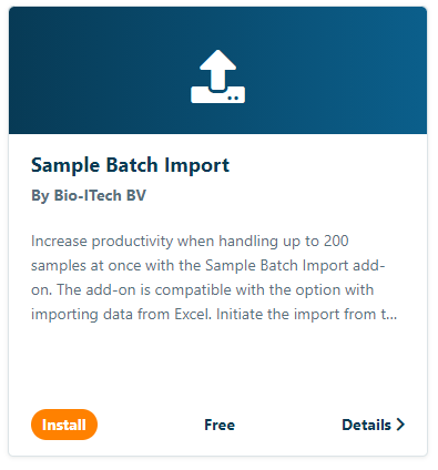 The option to import samples from an Excel spreadsheet or other table-based format is supported with the Sample Batch Import add-on, which is available in the Marketplace.