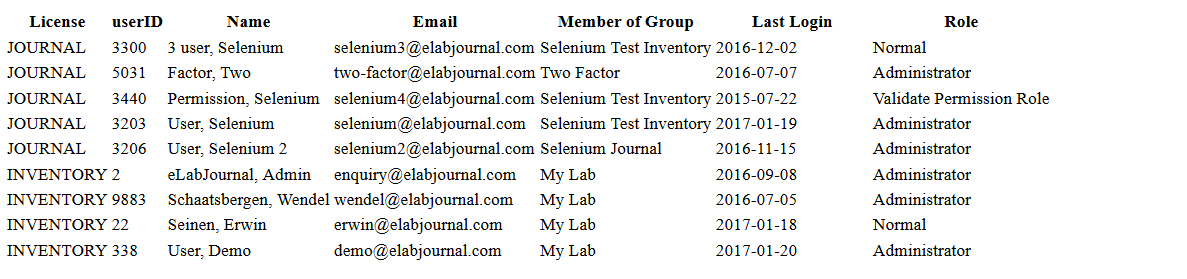- License – the product (eLABInventory or eLABJournal) for which the user is licensed and the organisation will be invoiced.