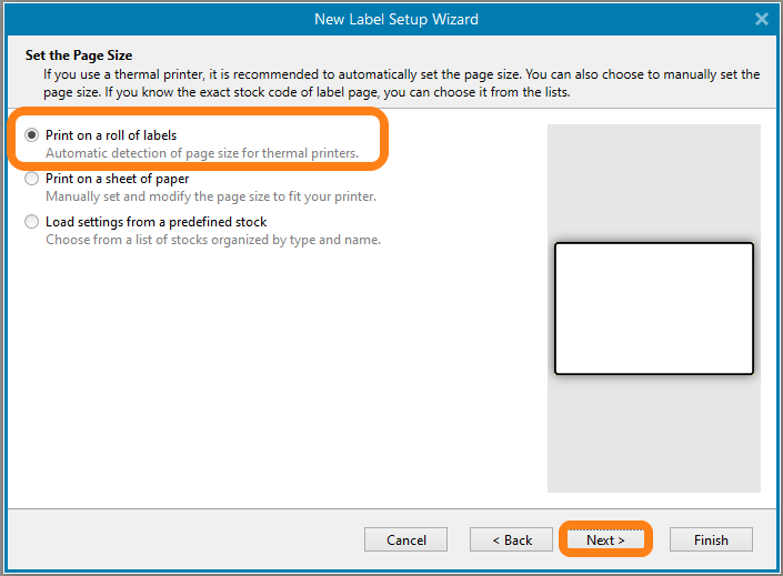 Select Print on a roll of labels and click Next >