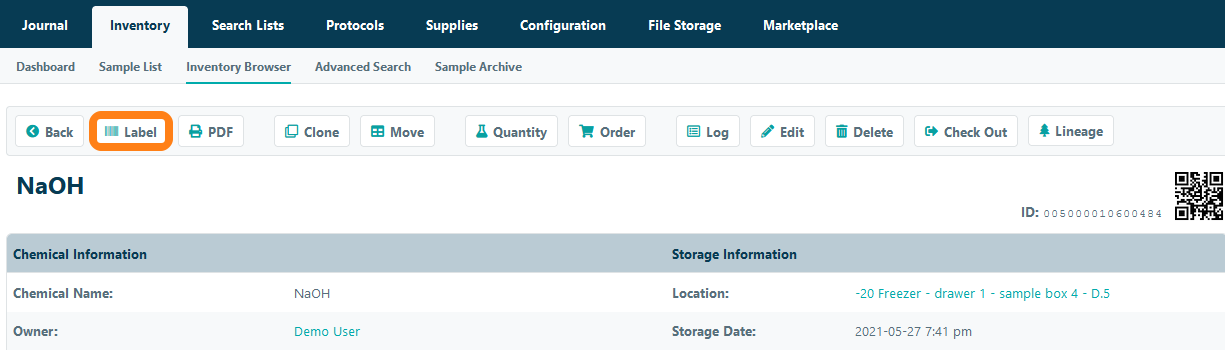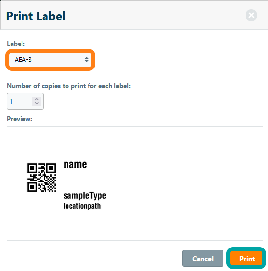 To print a sample to to a sample and click the Label