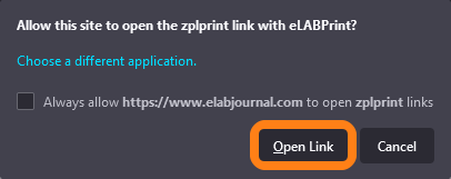 When you are printing the first time please allow the browser to open eLabPrint, if you don't allow the browser to open eLabPrint it is not possible to print labels using eLabPrint.