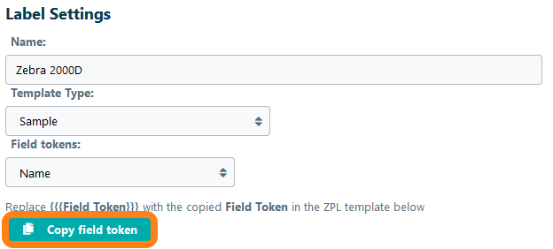 Now we will connect the variable fields on the label to the eLabJournal tokens. Click on the dropdown menu Field tokens and select ID and click on Copy field token