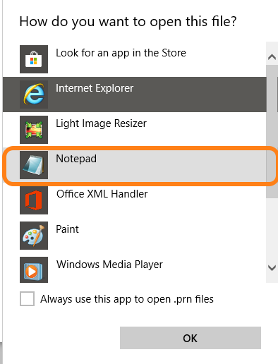 Choose to open this file with Notepad and click OK