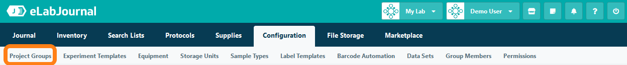 eLabJournal offers the option to set up Project Groups, which can be used to share data with people from both inside and outside of the lab. Project groups can be configured to serve a range of purposes: