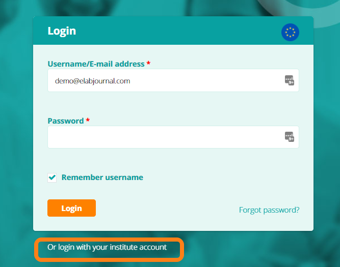 Submit your organization credentials to log into eLabJournal. You will be automatically forwarded to eLabJournal as authenticated user.