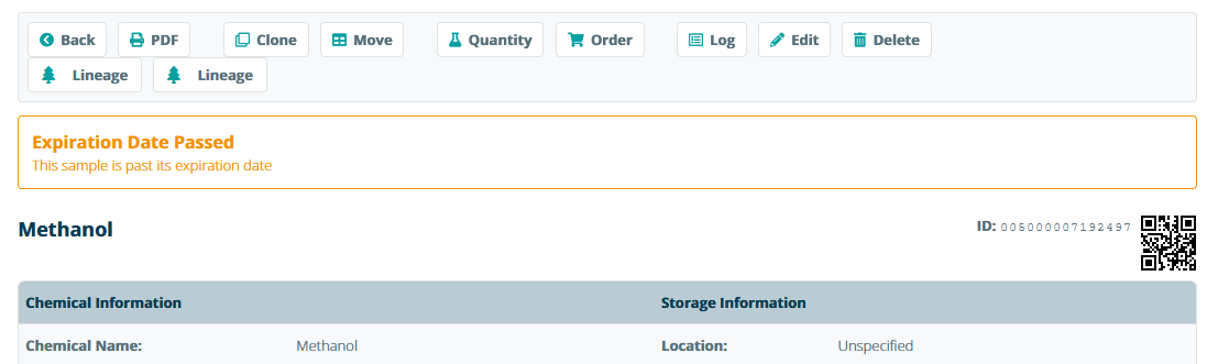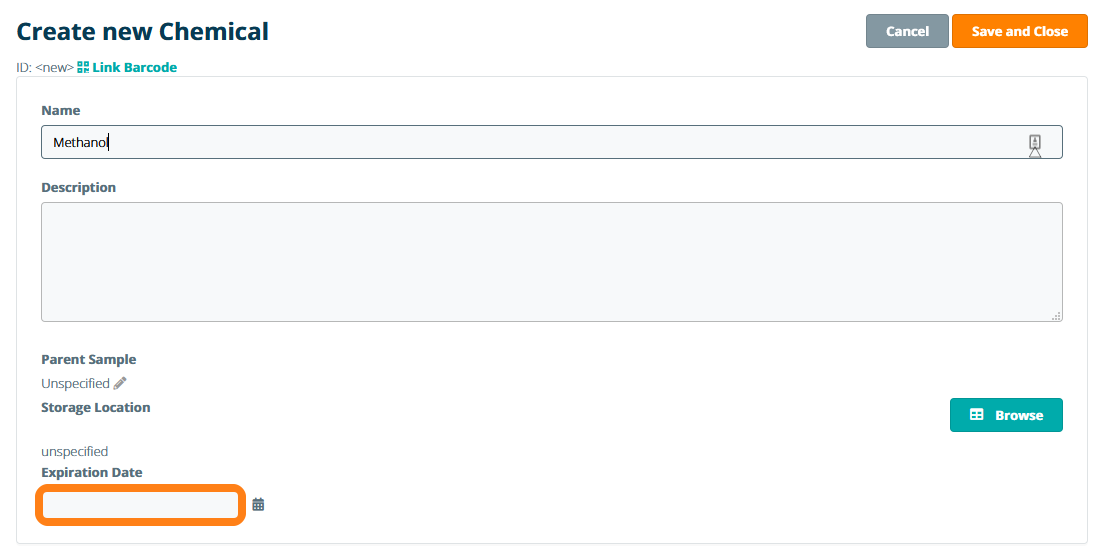 Set the expiration date and click Save and Close to store the sample. Once the expiration date has passed, the sample information sheet will display a notification that the sample has expired. Sample expiration notification is currently not yet actively sent. This is scheduled for a future update. Please contact us for more information.