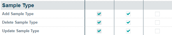 - Update Sample Type – required for updating the sample type template (i.e. adding or removing fields) and sharing sample types