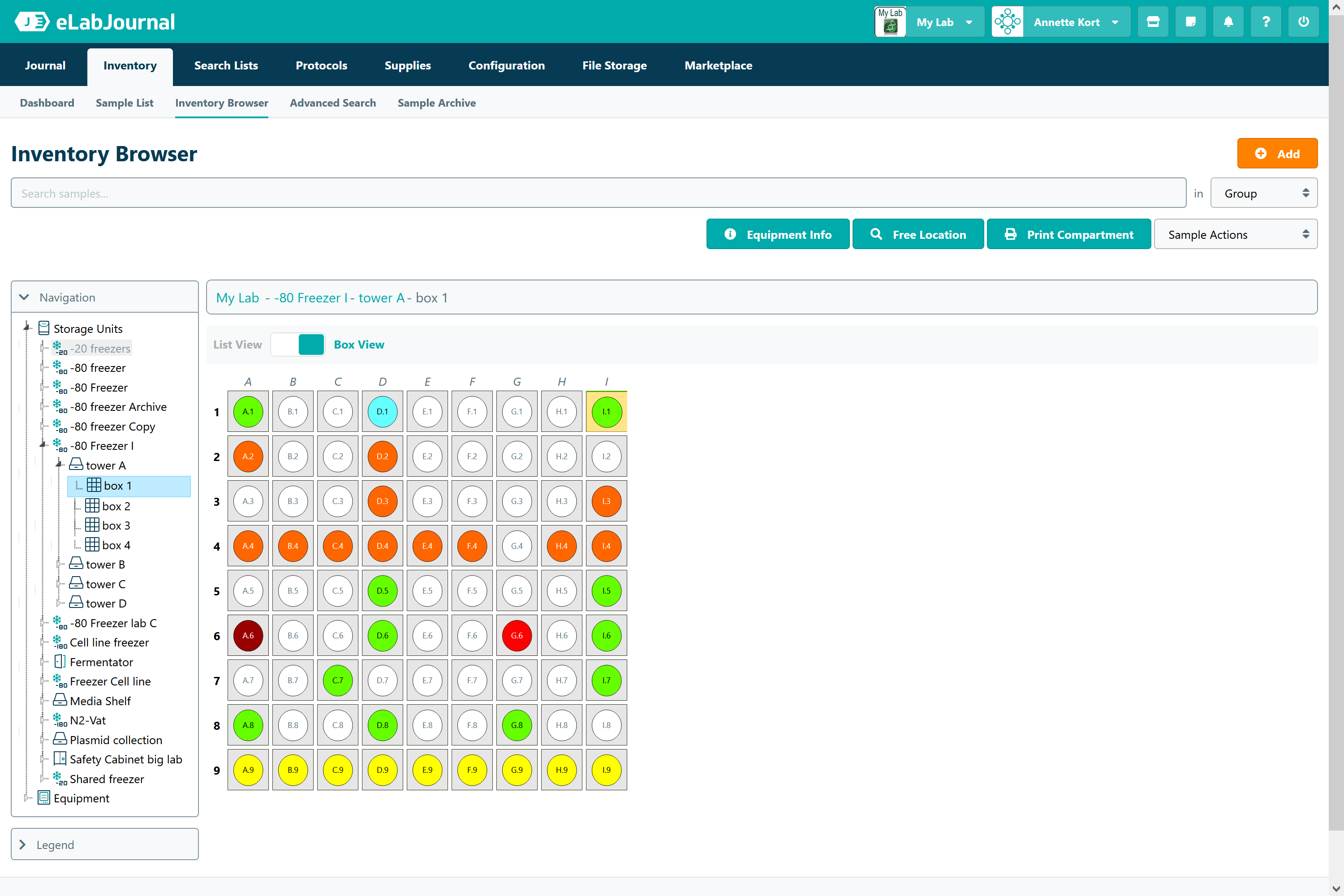 With the Inventory module in eLabJournal, users can track specimens, chemicals, samples, and consumables stored anywhere within your lab. You can easily navigate through the lab's storage locations to find or store a sample. You can also define lab-specific sample types such as cell lines, plant seeds, tissue, forensic specimen, bacterial strains, antibodies, and many more. All samples stored in the lab can be linked to experiments in the Journal module so that all historical data on your samples can be traced and logged. For labs only interested in the inventory and sample tracking system, the Inventory module is also available as the stand-alone system with eLabInventory.