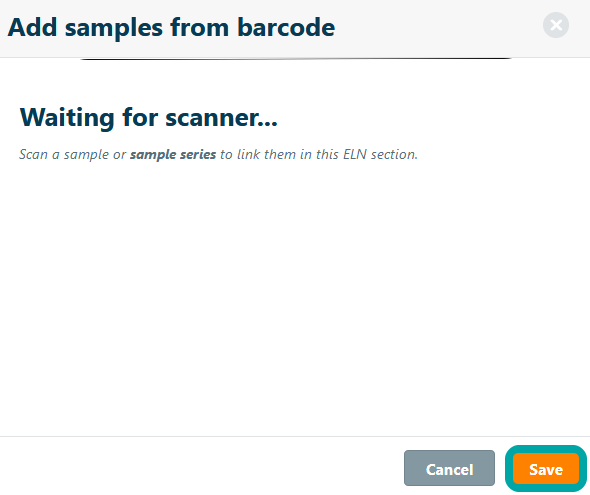 Improve efficiency by linking barcode labeled samples in the ELN with a barcode scanner. The Scan to ELN add-on adds the option to add samples to a sample section in the ELN using a barcode scanner. Activate the add-on and scan barcodes of samples or sample series to link them in the ELN sample sections. The add-on is also compatible with linked external barcodes to samples. You can download the free Scan to ELN add-on from our Marketplace.
