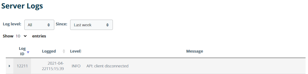 All database actions, including information, warning and error logs are recorded in the Server Logs of eLabJournal. In case of issues with the eLabJournal installation, the server logs can be inspected to see if there are any errors that might be related to issues that occur in the eLabJournal installation.