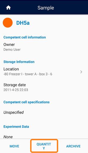 The eLabJournal Mobile App, also supports the option set or update the Sample Quantity.