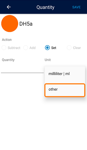 In case the sample does not have a quantity, you can set the amount and the unit. For samples with a specified quantity amount, the quantity can also be subtracted, added or cleared.