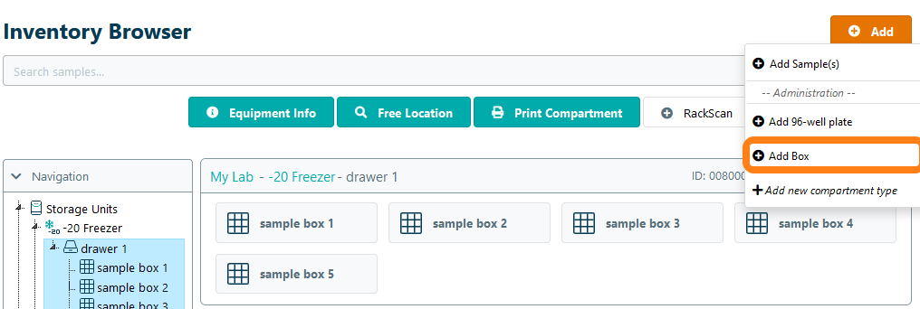 Note that updating compartments will only affect the setting for newly added compartments. It will never update sizing, numbering of existing compartments. The naming, numbering and the compartment dimensions as defined in the storage unit configuration, directly relates to the options in the inventory browser to add preconfigured compartments. As a group administrator, you can adjust the permissions such that users can only add compartments based on the set up the group administrator defines.